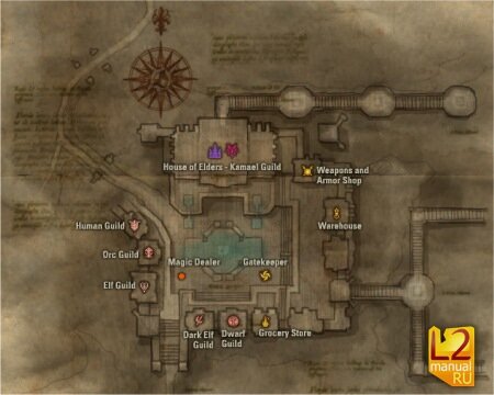 Деревня Kamael изолирована на отдаленных берегах Острова Душ, далеко на запад Темной Деревни Elven, где лежит скрытый от остальной части мира. Завеса тумана и темноты окутывают Деревню Kamael вечной ночью. Таинственные руны покрывают стены почти каждого здания и темное волшебство присутствует даже в самых дальних углах Деревни Kamael. House of Elders, где проживают Kamael Heirarchs и Grand Masters, в башнях по контуру деревни, где странные обелиски и кристаллы возвышаются к небесам. После того, как Остров Душ был обнаружен, послы от каждой расы, встретившись в Giran, и сочли Остров Душ нейтральной областью.